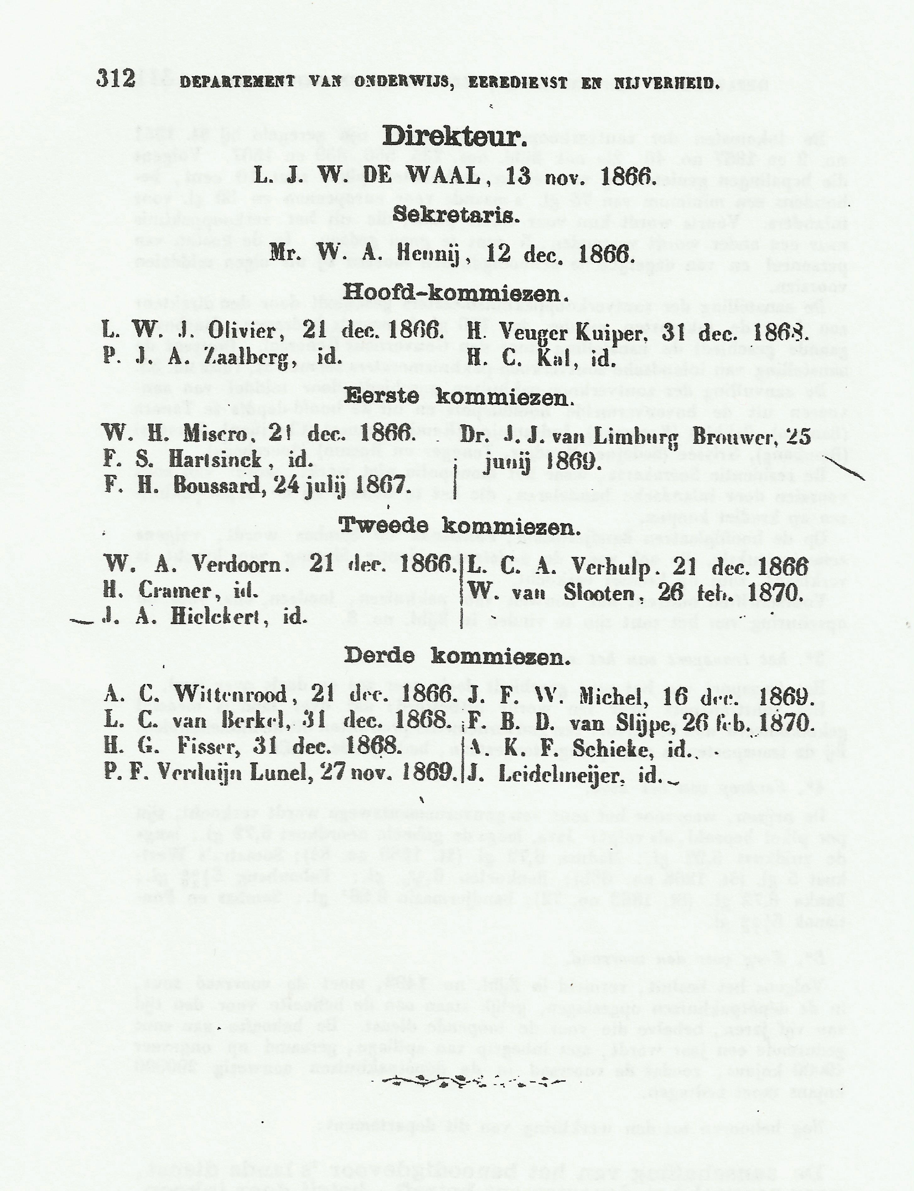 De algemene taakomschrijving van de Directeur van Onderwijs, Eeredienst en Nijverheid van hierboven laat niet zien wat Leonard allemaal in zijn takenpakket had inhoudelijk. Dit staat wel omschreven in de Indische Almanak van 1871. Hij heeft deze functie 8 jaar bekleed. Aangezien hij de eerste was, die deze positie in de Hoge Regering van Nederlandsch Indië bekleedde verdient hij alle hulde door het zolang vol te houden. In de Pdf kunt u lezen wat zijn werk behelsde. KLIK!> Departement van Onderwijs, eeredienst en nijverheid 1871 . De omschrijving van taken en werkzaamheden geven een aardig beeld over de samenhang tussen maatschappij en economie in die tijd. Men kan bijvoorbeeld lezen dat het metrieke stelsel in 1870 wordt ingevoerd, 35 jaar na de invoering ervan in Nederland, terwijl in dit stuk alles nog wordt berekend met de oude Javaanse maten, zoals uitbetalingen van guldens per pikol! Ministerieel wordt de taak van de Directeur als hij konsuls uit vreemde landen het exequatur mag verlenen. Bijzonder is wel dat aan deze agenten-konsuls geen diplomatieke status wordt verleend. Tot slot viel mij op dat de Europese en Inlandse zoutpakhuismeester dezelfde taken en verantwoordelijkheden hebben doch niet gelijk worden bezoldigd. De Europeaan krijgt 75 gulden per maand en de Inlander 50 gulden. Zo liberaal was het kennelijk nog niet in Nederlands-Indië.